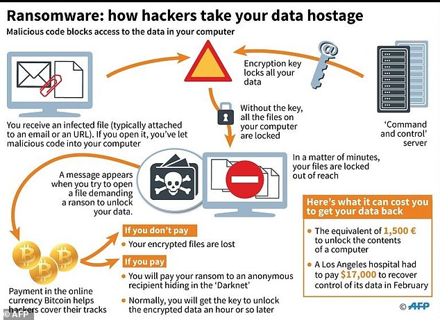 But speaking exclusively to MailOnline, the computer expert revealed that cyber attackers are working to bring down the ’emergency stop’ which is halting the virus from spreading in a bid to infect millions more across the globe.