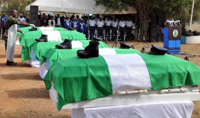 It was all tears as the Nigerian Air Force (NAF) buried the remains of five crew members, victims of the NAF Mi-35M Helicopter that crashed during a combat on Jan. 2 in Borno.