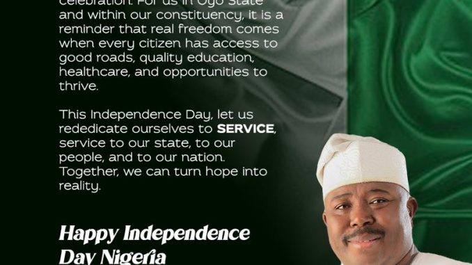Senator Sharafadeen Alli (APC-Oyo South) congratulated Nigerians on the nation’s 65th Independence anniversary, urging citizens to remain hopeful, patriotic and committed to sustaining the nation’s hard-earned unity.